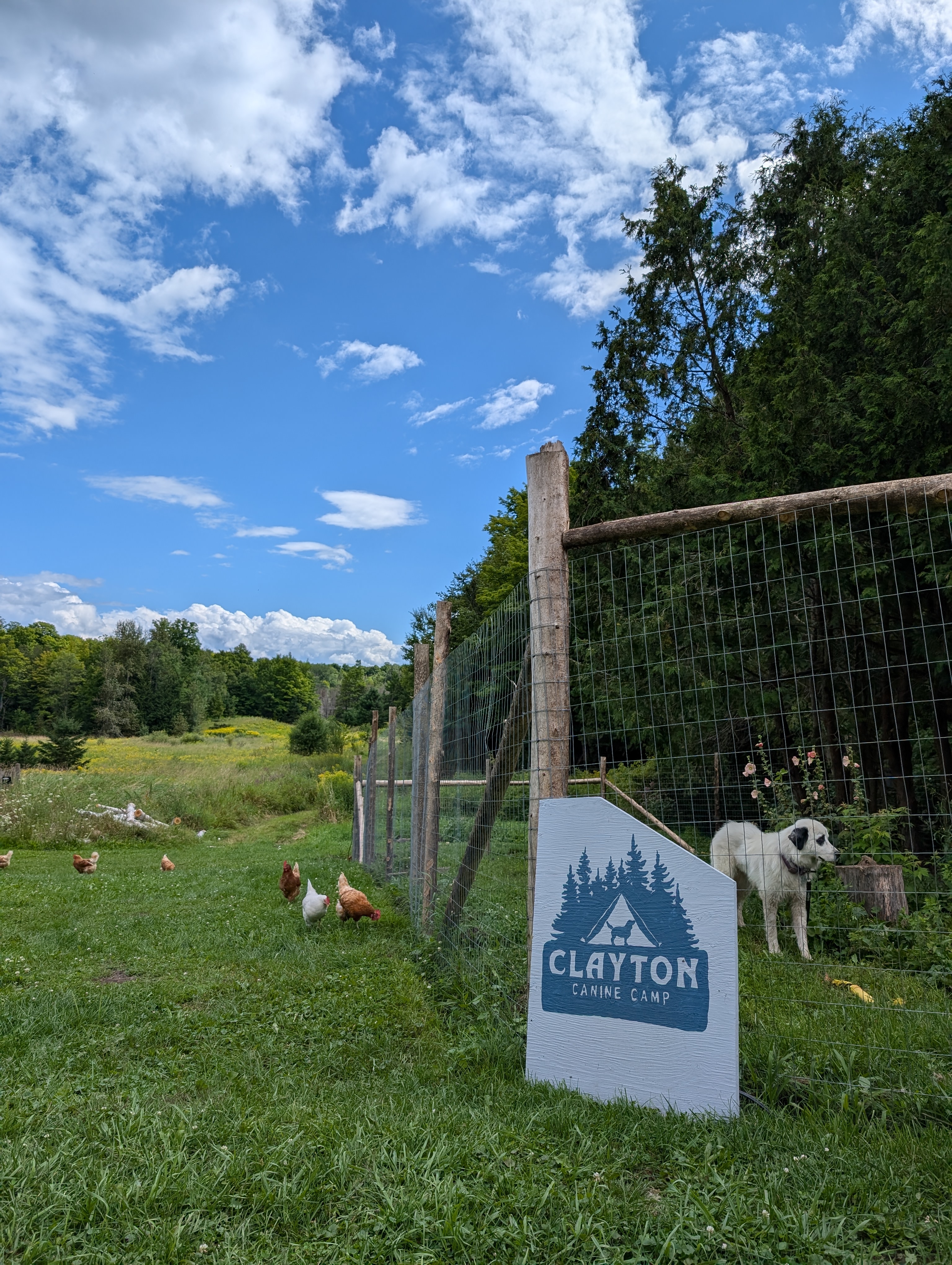 “Carla offers an excellent refuge for our golden retriever, Joni. From the minute you turn onto her private lane, Joni can tell where we’re headed and the excitement is palpable! I like that her property is a considerable distance from the road, an added safety feature for our pup. Her expansive property is the ideal getaway spot- many acres of lush fields, freshwater ponds, and even a pool for swimming! Our gal always comes home tired from exploration and play. Carla provides excellent care, attention, and affection and we feel lucky to have found Clayton Canine Camp!”